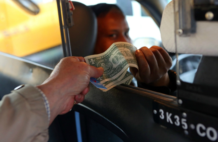 Taxi driver: Here's the expressway. Can I have $5 for the fee?