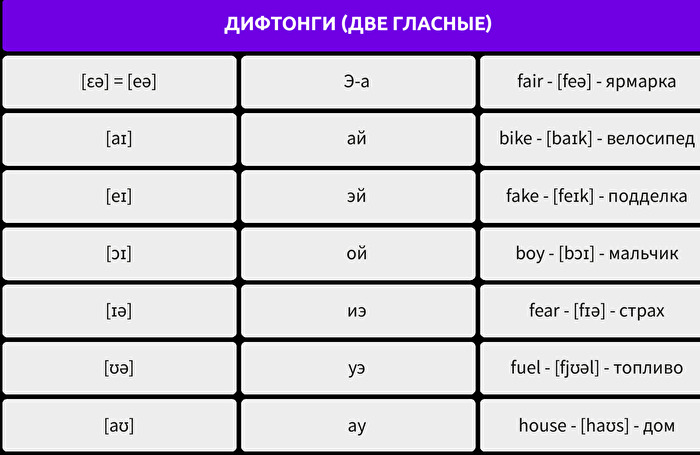 Давайте розглянемо деякі приклади дифтонгів в англійській мові: