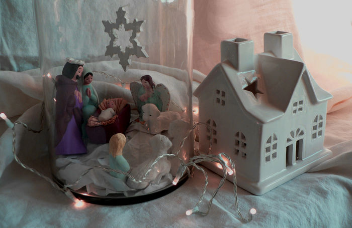 - Santons (Сантоны). Они представляют собой фигурки яслей, новорожденного Христа, Иосифа, Марии. Раньше их обычно изготавливали своими руками из глины, а затем раскрашивали. На сегодняшний день, конечно, мало кто изготавливает сантоны самостоятельно, проще купить их в магазине. Сантоны ручного изготовления очень отличаются от приобретенных в магазине.