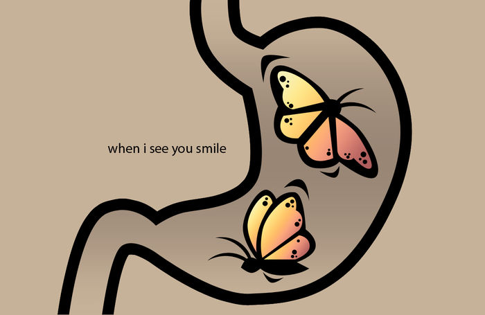 You shouldn’t buy her so many presents! She doesn’t love you and it’s just casting pearls before swine. – Тебе не стоит покупать ей столько подарков. Она тебя не любит и совсем не ценит. - Butterflies in one’s stomach – an awesome feeling when someone you care about looks at you, stares at you or complements you; and you don't know what to do in that moment, except feel happy. It can be a physical feeling like a little tickle traveling up your stomach. Проще говоря — «бабочки в животе». Также близкими по значению в русском языке являются такие фразы, как «мурашки по коже» или в некоторых случаях «кошки скребут». Первое свидание или собеседование, полет на дельтаплане — эта фраза как нельзя лучше опишет ваше состояние.