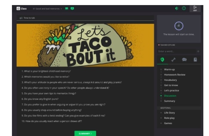 Мы рассмотрели самые интересные фичи цифрового учебника. Рассказывать о всех возможных тренировках можно тоже долго, но ведь лучше один раз попробовать, чем сто раз услышать. правда же? Уже сейчас можно попробовать пройти пробную тренировку в демо-версии учебника, которая специально была подготовлена для просмотра, для этого нужно всего лишь перейти по ссылке: ED Class Demo.