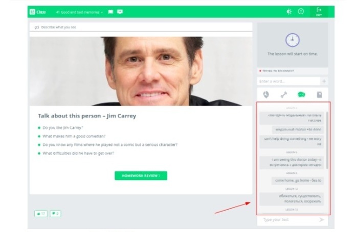 В меню виджетов справа вы найдете раздел заметок Notes, который можно использовать как заметки, чтобы записать нужную информацию, это своего рода чат между учеником и преподавателем, поэтому записывать может любой из них, а просмотреть заметки можно в любой момент, даже вне урока, просто заглянув внутрь учебника ED.