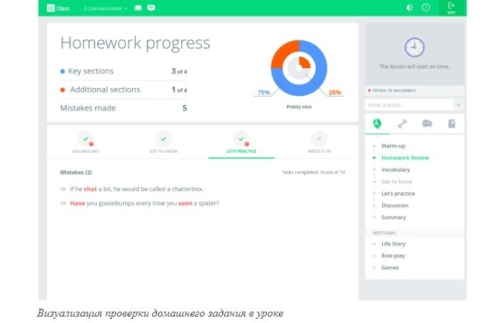 Кстати о домашнем задании. Одним из разделов урока является проверка домашнего задания вместе с преподавателем.