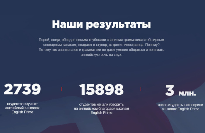 Скорость и эффективность изучения иностранного языка зависят от множества факторов. Можно в течение нескольких лет прилежно осваивать грамматику, а при встрече с носителем английского языка растерянно улыбаться и отвечать на вопросы невпопад. Преодолеть пресловутый «языковый барьер» нелегко, но только не для студентов школы английского языка Englishprime. Основное, но далеко не единственное достоинство престижного заведения - возможность полного погружения в англоязычную среду.