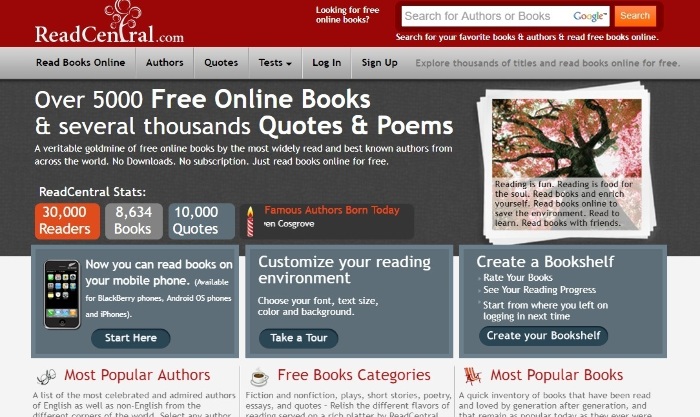 ReadCentral — бесплатная онлайн-библиотека с собственным приложением для смартфонов. Здесь собраны книги, стихотворения и отдельно выписаны цитаты известных писателей. Еще на сайте можно пройти тест на скорочтение и на Reading Personality (какой из вас читатель).