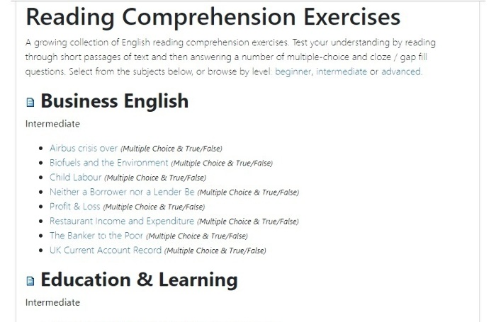 BritishCouncil — постоянный гость в наших рекомендациях. На сайте есть раздел для практики чтения. Там вы можете выбрать свой уровень, и сайт покажет вам подходящие тексты. Они читаются за 1-2 минуты, после чего предлагается выполнить упражнения.