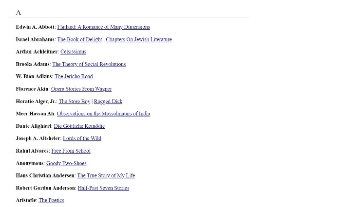 Authorama — эта библиотека не такая уж и большая, но тут фишка в другом. Это невероятно легкий сайт. Страницы весят очень мало и грузятся очень быстро, поэтому книги на Authorama можно читать даже при очень слабом интернете. Можно почитать книгу в машине, автобусе или поезде по пути из одного города в другой.