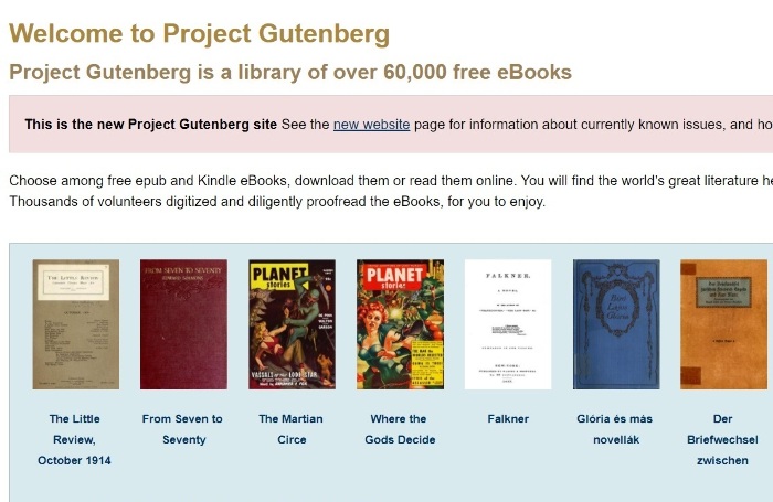 Gutenberg Project — это одна из самых старых онлайн библиотек, а возможно даже самая старая. Первая книга сюда была загружена в 1971 году. Ей была Декларация о независимости США. Та страница до сих пор хранится на сайте в первозданном виде, и вы можете прочитать ее. Только имейте в виду, то там почти нет веб-разметки, и страница выглядит по нашим меркам очень неаккуратно.