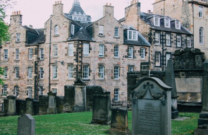 Оно расположено в центре Эдинбурга (за кафе «The Elephant House», кстати) среди живописных городских пейзажей. Его уникальность заключается в особом духе старой Европы. Мощные стены кладбища, интересное исполнение церкви и волнительные легенды — все это потрясает сознание и воображение.