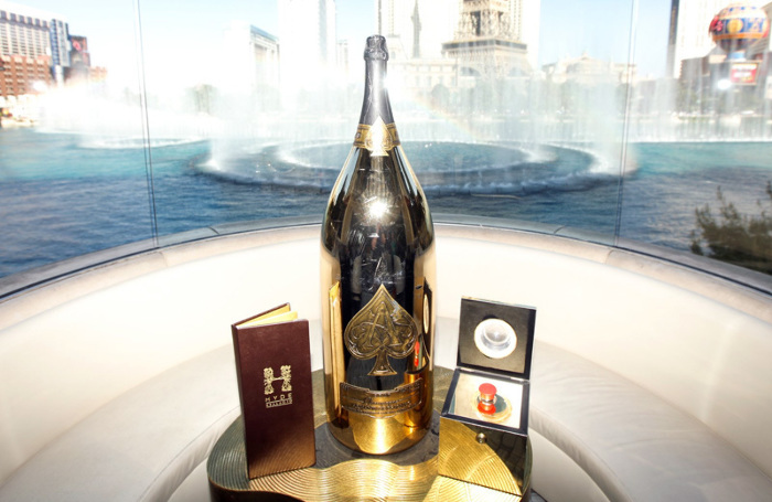 Служба охраны отеля доставит к вашему столику трехфутовую 45-килограмовую бутылку шампанского «Ace of Spades» от самого Jay Z! Wow! Объем увеселительной жидкости внутри равен 40 обычным бутылкам «шампуня»! Цена одной такой бутылочки — от $130,000. Вот с такой штукой уж точно можно зависнуть с большой компанией друзей и даже врагов!