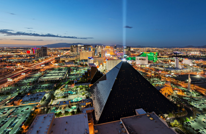 - Подобно египетским фараонам, которые стремились произвести впечатление, возводя построения огромных размеров, «The Luxor Hotel» в Лас-Вегасе заполучил известность благодаря своему примечательному строению в форме тридцатиэтажной пирамиды. Она покрыта бронзовым стеклом, в комплекте со Сфинксом и обелиском.