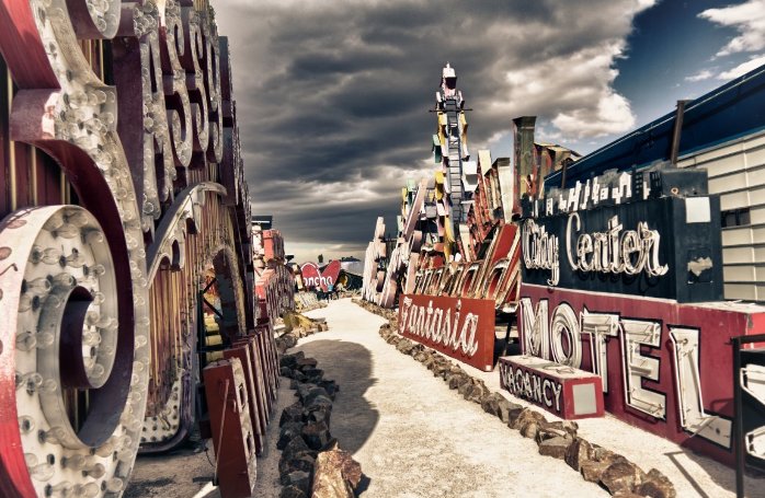 На фотографии выше изображена часть территории Музея Неона, расположенного на Fremont Street Experience. Он является одним из самых необычных музеев города. Целиком посвящён главному атрибуту игорной столицы — неоновым вывескам, без которых существование Лас-Вегаса сегодня было бы просто немыслимо.