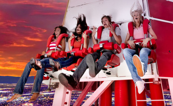 - The Big Shot (на картинке) находится на высоте 329 м, высочайший аттракцион в мире; представляет собой кресла, установленные по кругу на квадратную раму, которая с резкими ускорениями и торможениями «прыгает», а фактически скользит вдоль вертикального шпиля башни. Would you face your fear of heights?