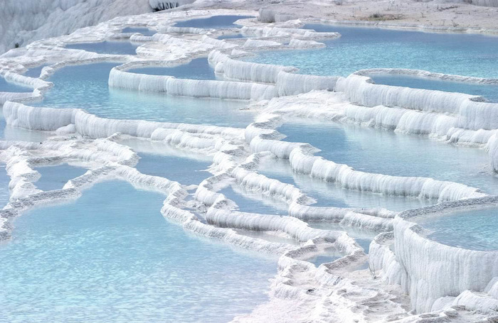 К самым сказочным и необычным местам на нашей планете относится также турецкий Памуккале. Вода, которая стекает со склонов горы, образует причудливые водоёмы с известняковыми стенами белоснежного цвета. Издалека эти каменные террасы напоминают гигантские хлопья ваты, что и послужило названием этого удивительного места — «Cotton Castle», Хлопковый замок. Помимо всего внешнего великолепия, воды в этих источниках являются целебными, ведь здесь лечат болезни опорно-двигательного аппарата и сердца. Гора открыта для туристов круглосуточно, хоть вход на нее и платный.