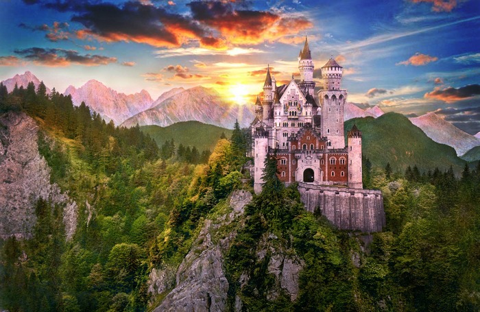 Нойшванштайн переводится как «Новый Лебединый Камень». Сказочный замок, который спрятался среди Баварских Альп, получил невероятную популярность среди туристов со всего мира. Построен он был при баварском короле Людвиге II, и воплотил в себе любовь правителя к лебедям и музыке Вагнера. Также невероятный дворец стал источником вдохновения Чайковского для его «Лебединого озера», он же стал прототипом замка «Sleeping Beauty» (Спящей красавицы) в Диснейленде в Париже. На данный момент замок является музеем, открытым для посещения туристами, в нем же регулярно проходят концерты музыки Вагнера, так любимой Людвигом II.