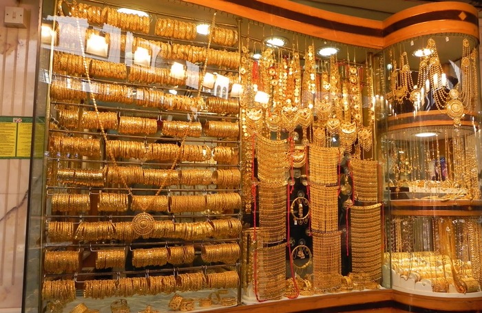 Золотой рынок города Дубаи не уступает по популярности рынку специй. В 300 торговых точках вы найдете огромное количество золотых украшений на любой вкус и размер: золотые кольца, браслеты, ожерелья, колье, серьги. А какое именно золото вы хотите выбрать: желтое, белое, розовое? А с какими камнями: с сапфирами, изумрудами, бриллиантами, рубинами? Просто голова идет кругом. Кто-то подсчитал, что общий вес всего золота рынка составляет около 10 тонн! Витрины «are overfilled with», в смысле переполнены драгоценной красотой, которая так и манит. Так что будьте осторожно, вы можете подхватить золотую лихорадку.