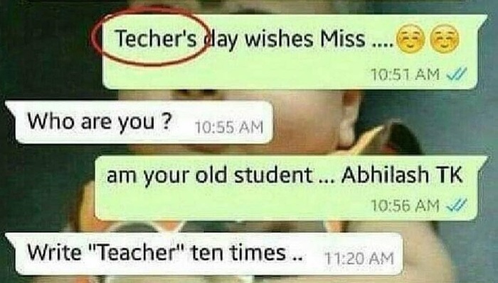 З цього листування запам'ятовуємо не тільки, що teacher пишеться з "ea" на початку, а й те, що носії іноді скорочують I am до простого am (а you are до youre, навіть без апострофа).