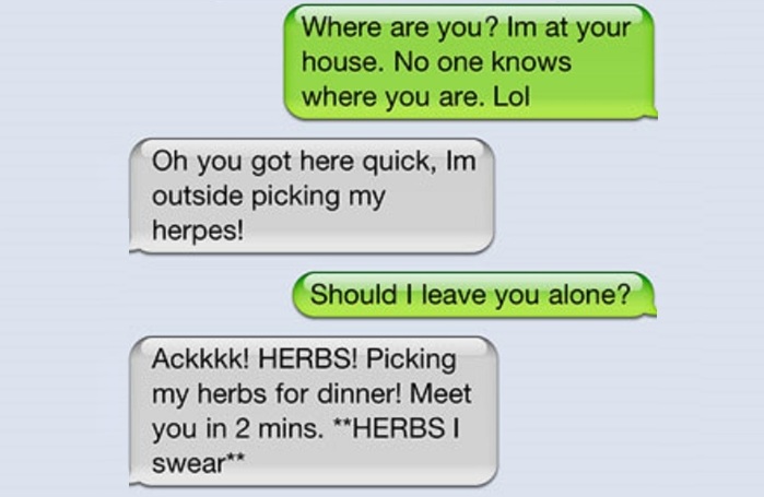 - Оу, ти так швидко дістався. Я зовні збираю свій герпес!