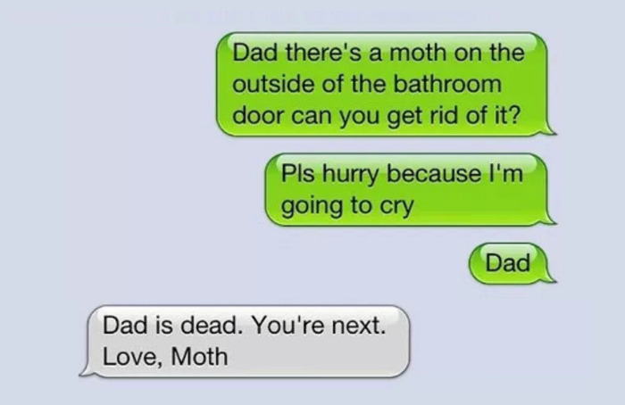 - Тату, там моль за дверима ванної кімнати, можеш позбутися її?