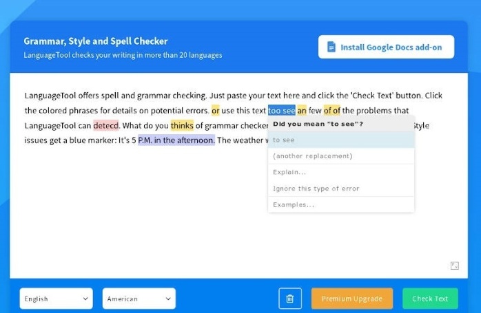 Безкоштовною версією можна користуватися безлімітно. Загалом її вистачає для виявлення помилок. З платною преміум-версією можна розблокувати пошук складніших помилок, таких як порядок слів, лексична відповідність тощо. Корисно тим, кому англійська потрібна для роботи.