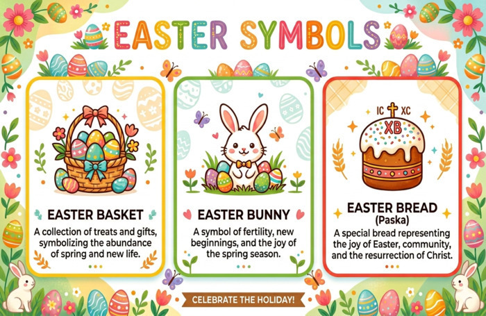 Цікавий факт: В англомовних країнах головним "героєм" є Easter Bunny. За легендою, він ховає розфарбовані яйця, а діти мають їх знайти. В Україні ж ми більше фокусуємося на кошику та освяченні страв.