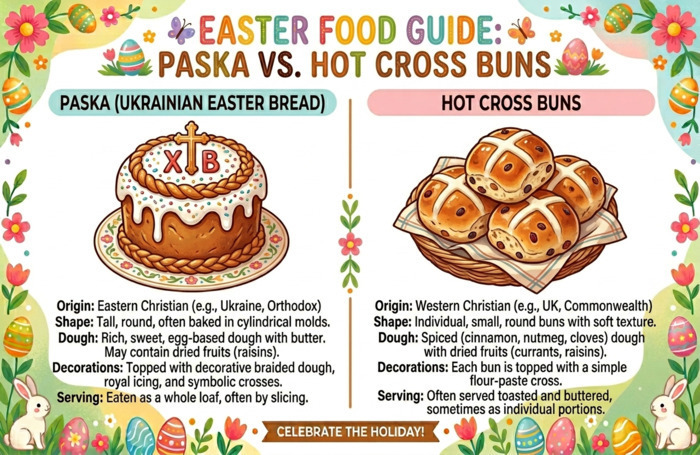 - Hot Cross Buns. Це суто британська фішка — пряні булочки з хрестиком. Смачно, але на нашу паску не дуже схоже.